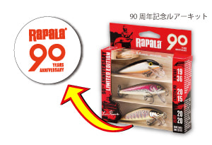 90周年記念ルアーキットのパッケージに付いている応募シール2枚をハガキに貼り付け、必要事項を明記の上、ご応募ください。おひとり様何度でもご応募可能です。必ず所定の郵便料金分の切手を貼って投函ください。