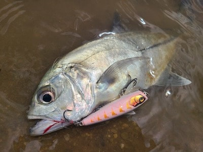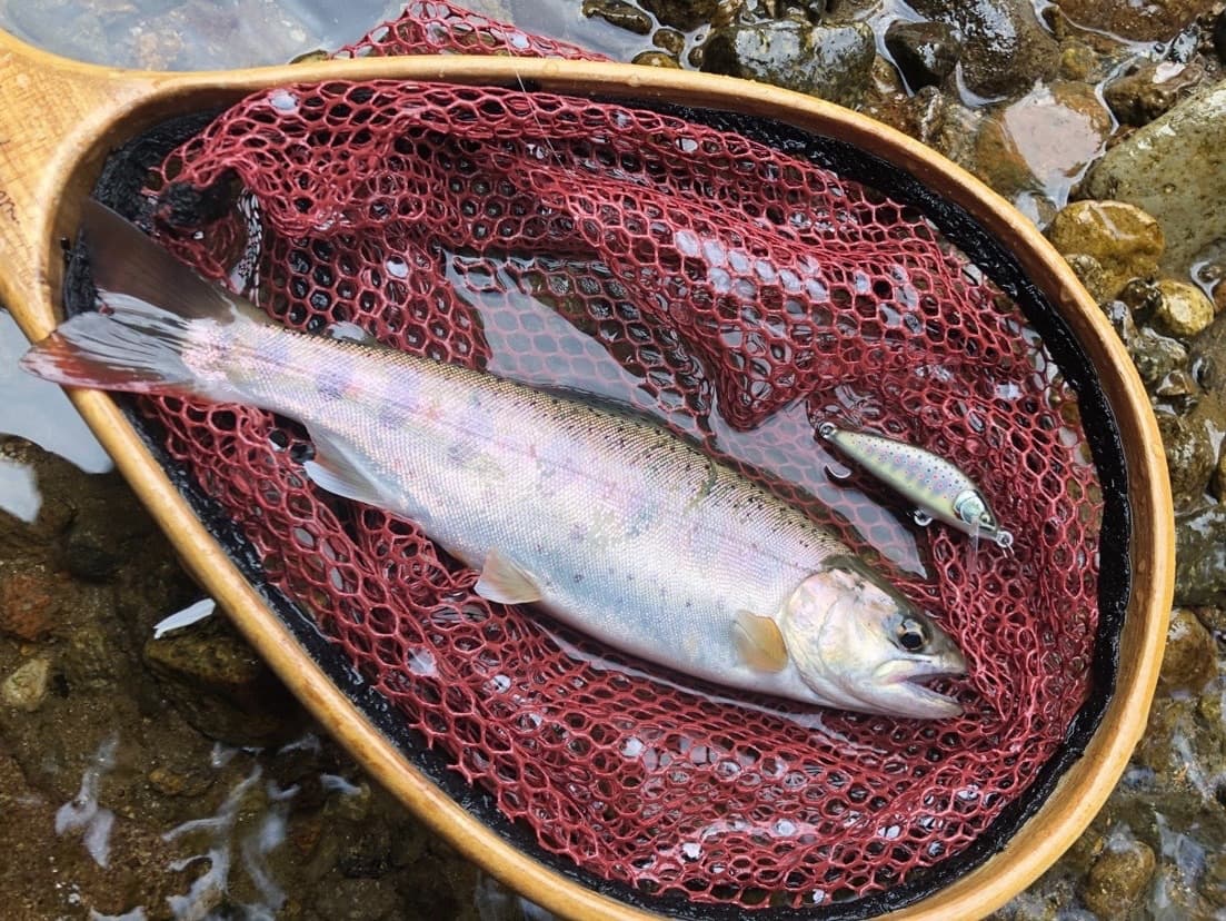 流れの強い渓流釣りでは、上流へアップクロスに投げて下流側に流れていっても水噛みが良く、しっかりローリングアクションをする。また、流れのヨレに投げても、バランスを崩さずに泳ぐ。