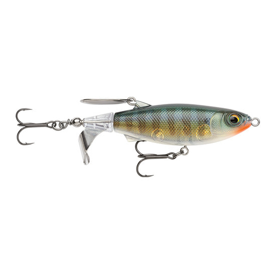 MLF(Major League Fishing)等のトーナメントで活躍中のJacob Wheeler氏が開発に携わったトップウォータルアー。金属製のテールプロップとメタルブレードがリトリーブ時に衝突することにより、独特のサウンドが生まれ、魚の捕食本能を刺激する。耐久性に優れたボディと、バランスのとれたウェイト設計により、安定した飛距離を実現。フロントフックアイはスイベルフックシステムを採用し、ファイト中に魚がバレるのを防ぐ。